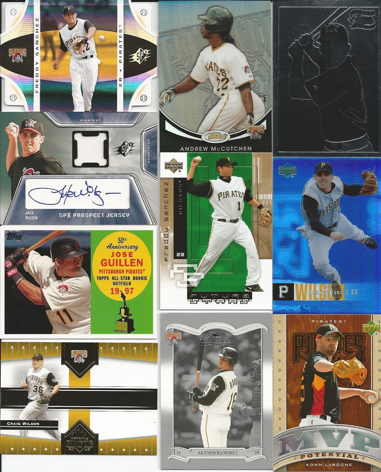 and a few more that I needed along with a Van Slyke for the PC.This is some more of the highlights. I have often seen that Jack Wilson auto on COMC and ebay, but never pulled the trigger on it. Fortunately now I don't have to. He also included a numbered McCutchen that I needed to add to my Finest rainbow. I tried many times to scan the Wilson bowman heritage chrome, but it doesn't scan well for some reason. Just know that it looks amazing in person.